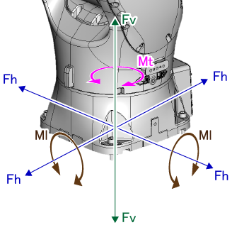 机器人动作时在机器人安装面产生的最大反作用力如下所示。