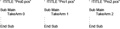 In this example, “Pro1” acquires the arm group 1 by TakeArm command.