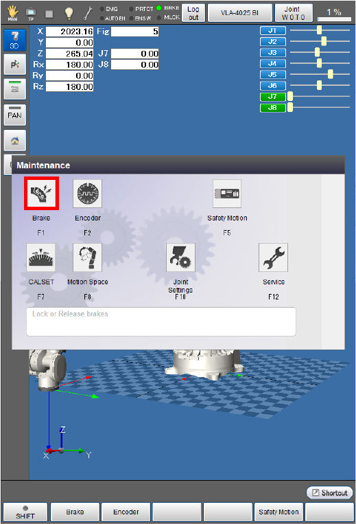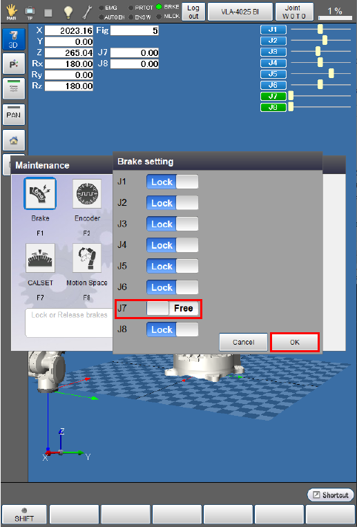 The brake is released and the [Maintenance] window appears.