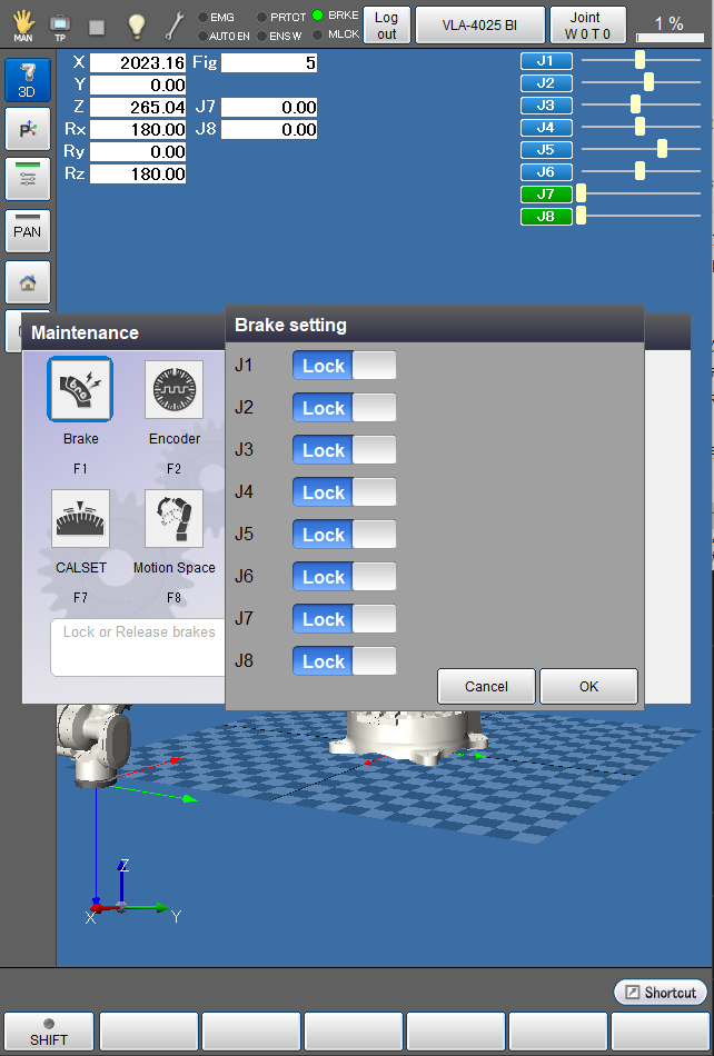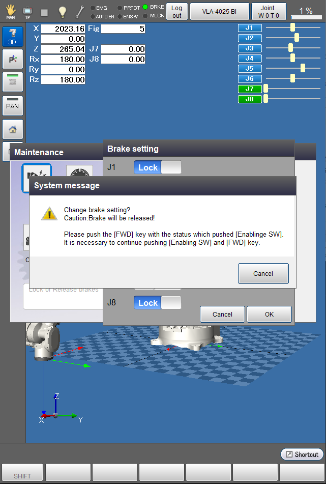 A system message appears to confirm whether to change the brake settings, then press the [OK] button on the smart TP to change the settings.