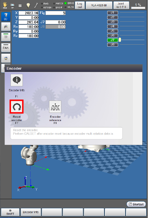 Press [F7 Reset encoder].