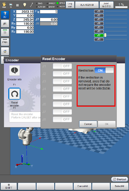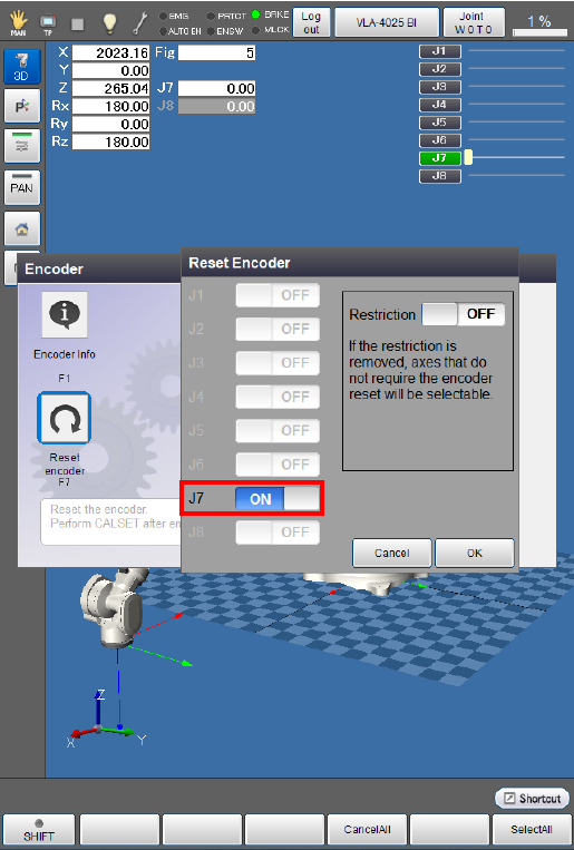 Encoder reset is not executed if [Cancel] is pressed.
