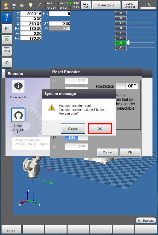 System message is displayed to confirm whether to execute the encoder reset. Press [OK] to execute.