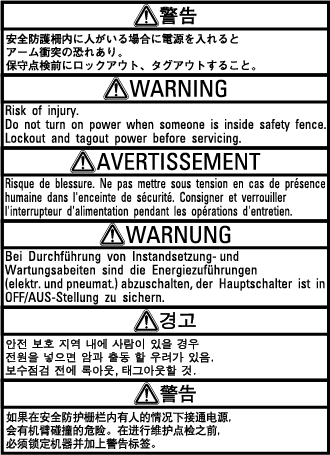 控制器上贴有如下以下所示的警告标签、注意标签。贴有标签的附近存在特殊危险或注意事项,请务必遵守标签上警示的内容。