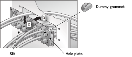 - 出厂时,由于有孔板上的孔全部插入虚拟索环中,因此只拆下没有穿电缆的虚拟索环。