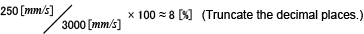 - 在3轴机械上,将工具前端设为250[mm/s]以下时的计算例子