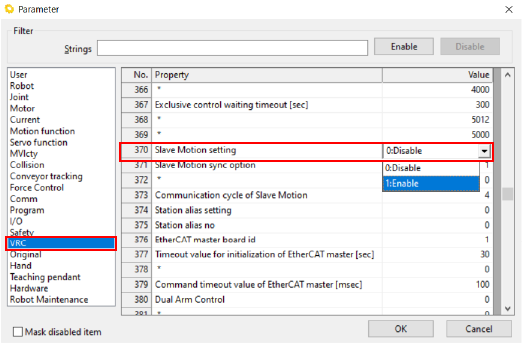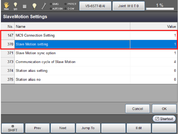 将[370:SlaveMotion有效设定]设为[1:有效],按下[OK]。