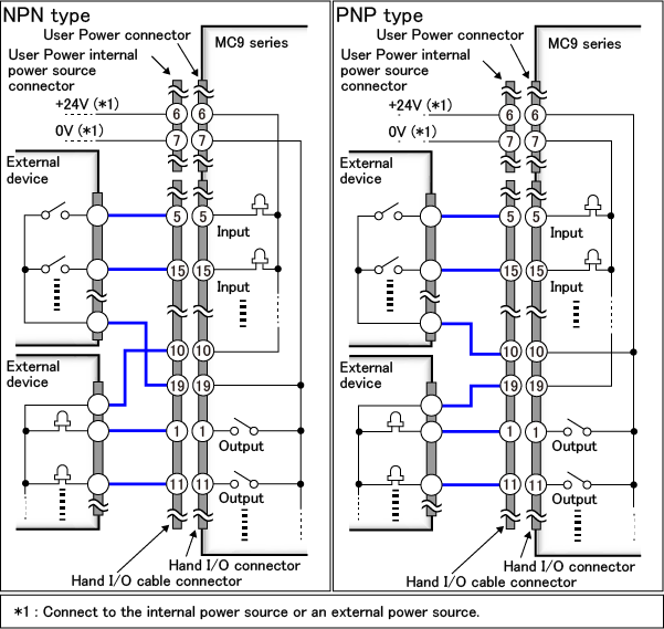 Hand I/O电缆有“标准”和“可动用”,端子编号和线色的组合不同。