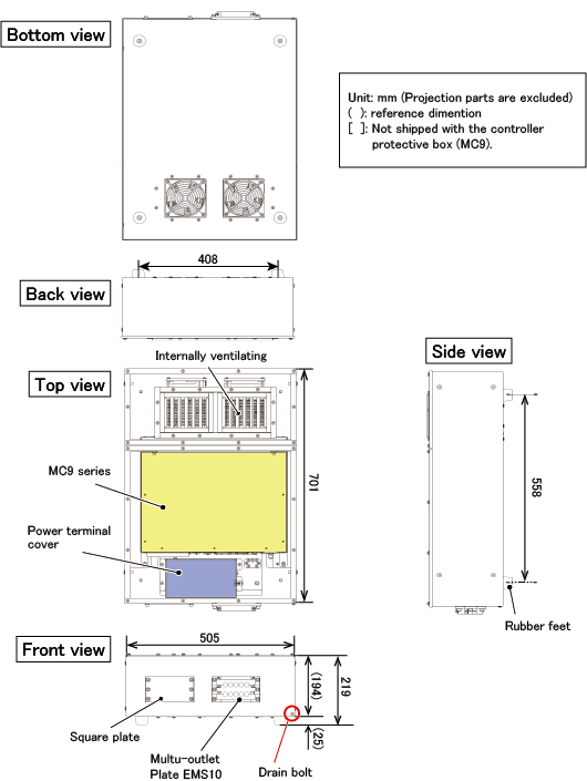 控制器保护箱(MC9)的各部位名称和尺寸如下所示。