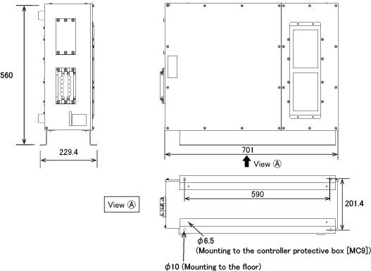 - 确保距控制器保护箱(MC9)的顶面开口部位150mm以上。