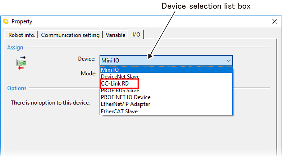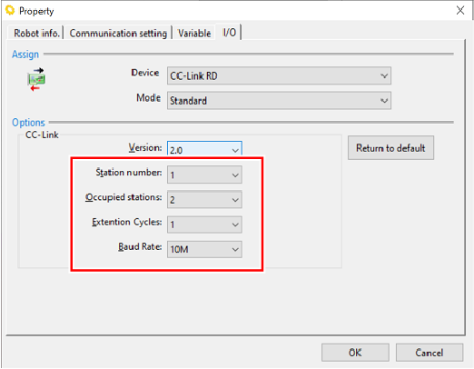 If you have added the CC-Link slave terminal to the existing robot controller, you need to change [Device].