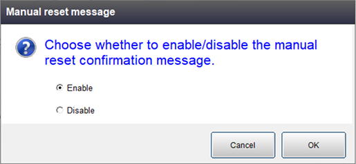 设定是否显示手动模式下按下允许开关时显示的手动复位确认讯息。