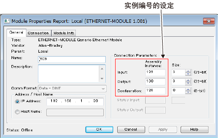不使用EtherNet/IP子局端子的EDS文件进行主局的配置时,需要设定实例编号。请设定以下编号。