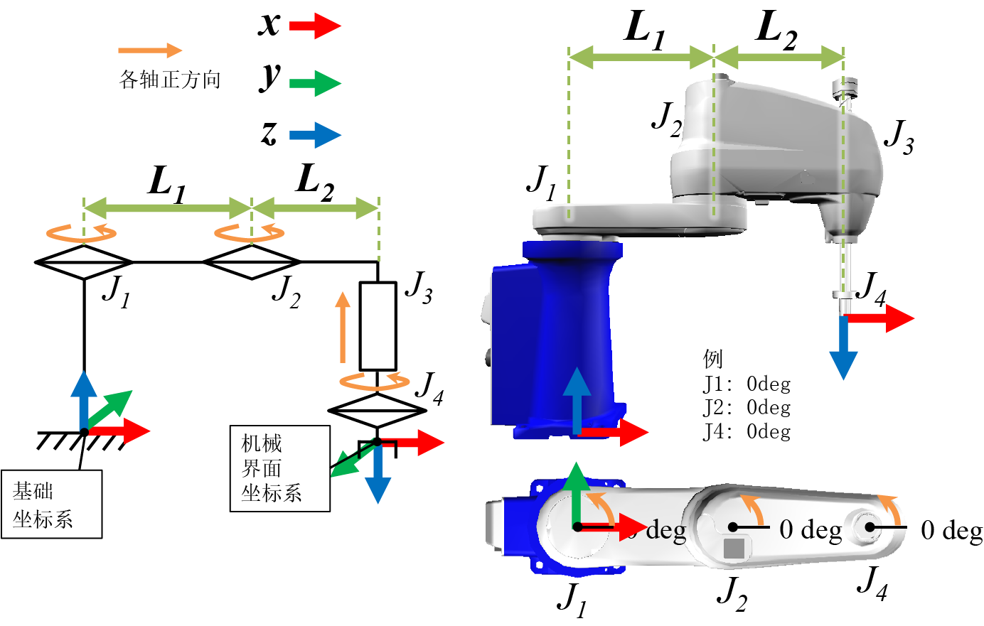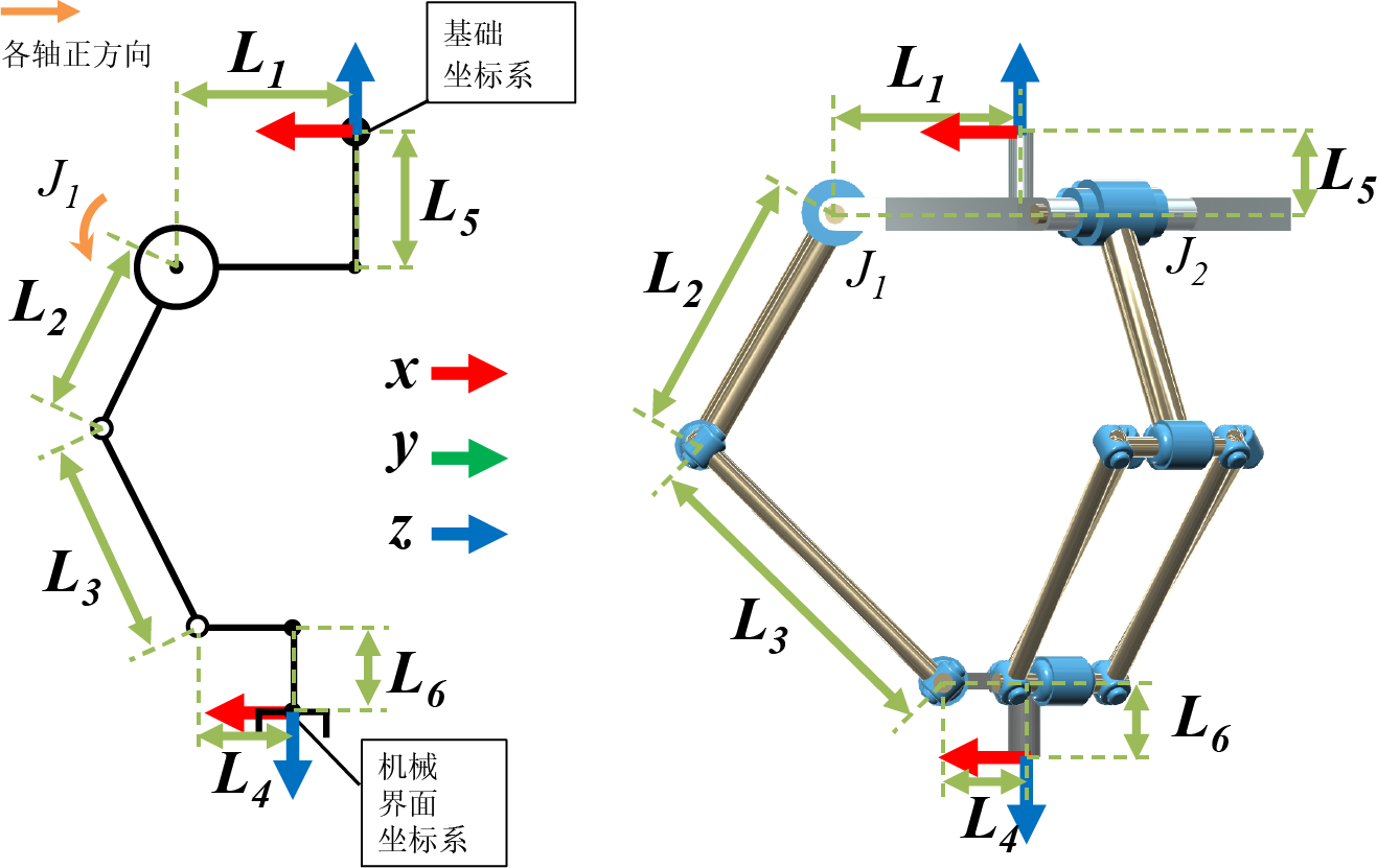 | L2 | 从第2轴旋转中心到第4轴旋转中心的长度 | 大于0mm |