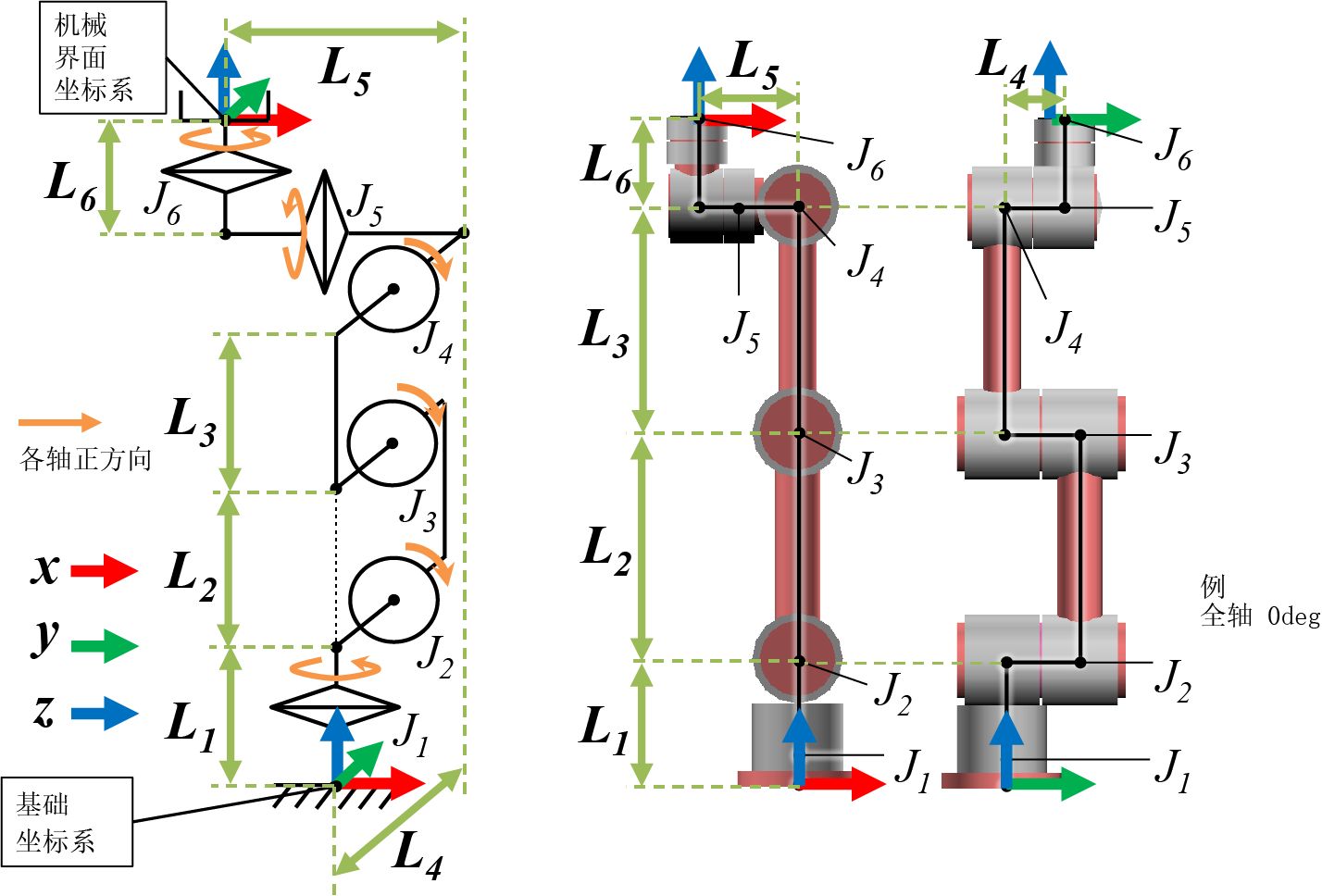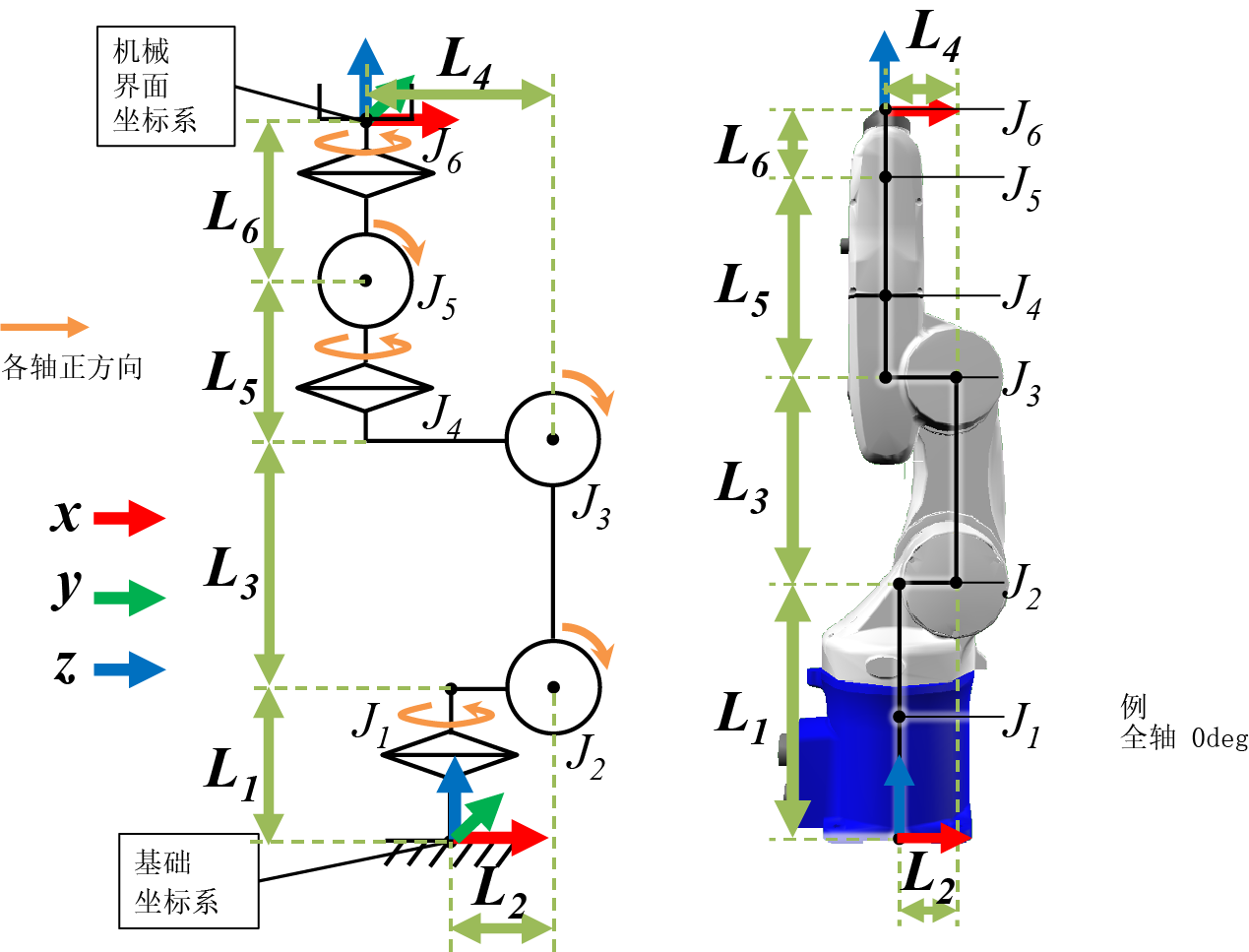 | L5 | 从基础坐标原点到关节轴中心的Z轴方向的偏移 | 0mm以上 |